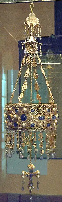 Coroa votiva de Recesvinto (m. 672), em exposição no Tesouro de Guarrazar