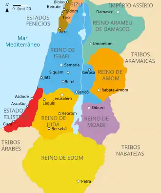 Mapa teórico mostrando Moabe de roxo por volta de 830 a.C.