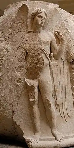 Tânato como um jovem alado, no Templo de Ártemis, em Éfeso.