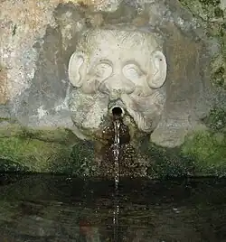 A Abadia Velha, o primeiro Mosteiro provisório, foi construída na margem do rio Alcoa. Mais tarde, o Mosteiro passou a ser abastecido pela água que provinha de um braço lateral artificial do Alcoa, a Levada. A partir dos resultados de várias investigações, é possível que o rio Alcoa tenha sido desviado ou rectificado e que algumas partes do seu leito anterior tenham sido utilizadas para a construção da Levada. No entanto, é surpreendente que os monges tenham desde muito cedo criado um sistema próprio de abastecimento de água. Deste modo, em Chiqueda, que se encontra no curso superior do rio Alcoa, foi aproveitada uma fonte, cuja água foi encaminhada através de túneis subterrâneos durante mais de 3,2 km. Por vezes, ela corria em direcção ao Mosteiro, numa inclinação de 0,25%, através de túneis transitáveis ou por canais sob céu aberto. Era desta forma que o Lavabo, localizado à entrada do Refeitório, no qual os monges podiam lavar as mãos, e a cozinha eram abastecidos de água. Dentro do muro do Mosteiro existiam também diversos poços, de onde provinha água limpa, como se pode ver acima, por exemplo, pelo gárgula datado, provavelmente, do século XVI. Presume-se que o abastecimento de água, através da passagem subterrânea, servisse, igualmente, para uma necessidade em tempos de crise. Os correspondentes afluentes subterrâneos de fontes mais distantes de canais desviados para túneis transitáveis também existiam no lado sul. Ainda existem partes desses túneis. Provavelmente, eles destinavam-se ao abastecimento do Mosteiro com água de fonte antes de ter sido construída a nova conduta de água de Chiqueda. Instalações subterrâneas como estas também são conhecidas no lado norte do Mosteiro direccionando-se para Vestiaria.[15]