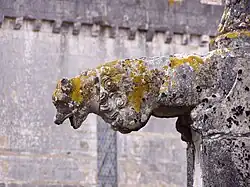 O interior do edifício demonstra a existência de um gótico avançado, mas o exterior do edifício exprime a austeridade cisterciense, neste caso orientada para objetivos mais pragmáticos. Realmente, como exigiam as leis cistercienses, não existiam torres, e as fachadas, nomeadamente o frontispício, possuíam apenas uma parede lisa com empena triangular. As paredes são contrafortadas, exceptuando a cabeceira, na qual surgem pela primeira vez arcobotantes na arquitectura portuguesa. A coroação do templo, pelo exterior, é composta por merlões com topo biselado dos dois lados, sobre um parapeito que descansa numa fiada de modilhões. Esta característica confere ao conjunto uma solidez militar, um ar de fortaleza.