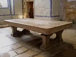 Em frente da entrada do refeitório encontra-se o lavabo. No meio de um pavilhão de cinco cantos existe um tanque com água corrente, no qual os monges lavavam as mãos antes das refeições. Esta disposição é típica de mosteiros cistercienses. O lavabo é igualmente alimentado pela água da própria conduta de água potável. O tecto do pavilhão possui um terraço, ao qual se acede por meio de uma escada a partir do claustro superior. Nesse terraço encontra-se um antigo relógio de sol.