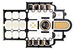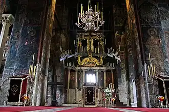 A igreja tem naos de cinco naves, uma iconóstase de três partes e uma parvise de três naves. Com a cúpula, tem 26 m de altura. As suas paredes exteriores são executadas em camadas alternadas de mármore branco e rosa. Os portais, janelas, consoles e capitais são ricamente decorados. Cristo, o Juiz, é mostrado rodeado por anjos na parte oeste da igreja. Seus vinte principais ciclos de murais de afrescos representam a maior galeria preservada de arte medieval sérvia, apresentando mais de 1000 composições e vários milhares de retratos.