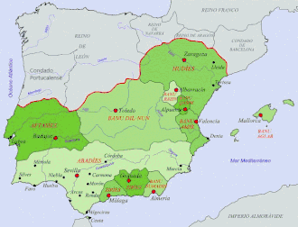 Condados , Reinos e Taifas na Península Ibérica no século XI.Segundo a "Canción de Mio Cid", 300 dos melhores cavaleiros castelhanos decidiram acompanhá-lo no exílio, fazendo de Zaragoza seu quartel general e travando batalhas vitoriosas contra os mouros.