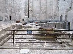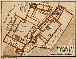 - ↑ «O Pátio de Honra e Guia do Palais des Papes, op. cit., p. 21.». Arquivado do original em 1 de setembro de 2009
