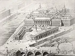 Planta reconstruída do século XIX da área em 1754, gravura de Theodor Josef Hubert Hoffbauer