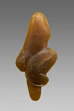 Chamada de Vênus de Tursac, a peça foi esculpida em âmbar e possui oito centímetros de altura (Abri du Facteur, Tursac, Dordonha - cerca de 30 mil anos).