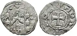O significado e a lógica por trás da única inscrição +ΠΟΛΙΤΙΚΟΝ, bem como o local onde as moedas foram cunhadas, têm sido muito debatido. Parece que a inscrição indica que estas moedas foram cunhadas para pagar alguma necessidade pública (como as contemporâneas moedas francesas BVRGENSIS). Estudiosos anteriores, começando com Gustave Schlumberger, defendem um uso para tíquetes para distribuição de pão, mas hoje elas são vistas como verdadeira cunhagem.[5] As moedas são geralmente consideras como sendo cunhadas em Constantinopla, mas devido a sua aparência "ocidental" tem sido sugerido variadamente que elas foram cunhadas em uma casa da moeda provincial nas cercanias dos Estados francos no sul da Grécia. O tipo, contudo, é inteiramente ausente de achados locais na área, e sua origem constantinopolitana parece segura.[6]