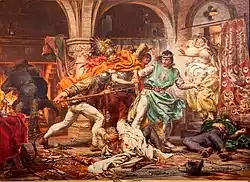 O duque da Grande Polónia sentiu-se bastante seguro quando foi convidado para uma reunião organizada por Henrique IV Probo . A reunião ocorreu provavelmente em 9 de fevereiro de 1281 em uma das aldeias da Silésia; [80] no entanto, o duque de Wrocław tinha outro plano - ele quebrou todas as regras de hospitalidade, prendeu os três príncipes que foram convidados (Przemysł II, Henrique V, o Gordo de Legnica, e Henrique III de Głogów ), e forçou-os a fazer concessões políticas. [81] Esta acção tornou-se ainda mais escandalosa pelo facto de apenas quatro anos antes Przemysł II e Henrique III arriscarem as suas vidas e exércitos para salvar Henrique IV Probo na Batalha de Stolec, que terminou com a vitória de Henrique V, o Gordo, o terceiro convidado de esta reunião. Os historiadores especulam [82] que a razão para o Duque de Wrocław tomar esta medida radical foi provavelmente o seu desejo de aumentar a sua influência sobre os principados vizinhos como parte dos seus próprios planos para uma coroação real. [83]