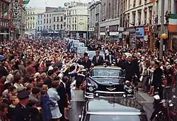 - ↑ «1963: Warm welcome for JFK in Ireland». BBC. 27 de junho de 1963. Consultado em 23 de fevereiro de 2012. Cópia arquivada em 3 de agosto de 2016