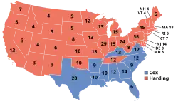 A liderança de Wilson na política interna após a guerra foi complicada por seu foco no Tratado de Versalhes e pela oposição do Congresso controlado pelos republicanos. Terminou no final de 1919 com sua incapacidade. [133] Um plano para formar uma comissão com o propósito de desmobilizar o esforço de guerra foi abandonado devido ao controle republicano do Senado, já que os republicanos poderiam bloquear a nomeação de membros da comissão. Em vez disso, Wilson favoreceu o rápido desmantelamento dos conselhos e agências reguladoras em tempo de guerra. [134] Embora McAdoo e outros fossem a favor da extensão do controlo governamental das ferrovias sob a Administração Ferroviária dos Estados Unidos, o Congresso aprovou a Lei Esch-Cummins, que restaurou o controlo privado em 1920. [135]