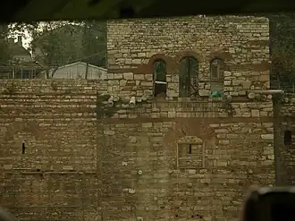 A chamada Torre de Isaac Ângelo, com sua alvenaria caracteristicamente irregular com as colunas de pedra reutilizadas