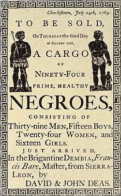 A importação de escravizados para os Estados Unidos foi proibida por lei federal a partir de 1808, mas o contrabando continuou, com o último navio conhecido a transportar africanos escravizados sendo o Clotilda, em 1859 ou 1860.[30][31] No entanto, o comércio doméstico de escravizados continuou a ser uma atividade econômica significativa. Estados como Maryland e Virgínia exportavam excedentes de escravizados para o sul, e membros de famílias escravizadas podiam ser separados — ou seja, vendidos — de maneira permanente, sem a possibilidade de se reencontrarem. Entre 1830 e 1840, cerca de 250.000 escravizados foram movidos entre estados. Na década de 1850, esse número aumentou para mais de 193.000, e os historiadores estimam que, no total, quase um milhão de pessoas foram comercializadas dentro do território dos Estados Unidos.[32]