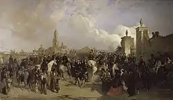 A Bélgica católica em 1830 rompeu com o protestantismo do Reino Unido dos Países Baixos e estabeleceu um Reino da Bélgica independente.[65] Os liberais e católicos do sul (principalmente francófonos) uniram-se contra o governo autocrático do rei Guilherme I e os esforços para colocar a educação holandesa em pé de igualdade com a francesa (nas partes do sul do reino). Havia altos níveis de desemprego e agitação industrial entre as classes trabalhadoras. Houve combates em pequena escala, mas levou anos até que os Países Baixos finalmente reconhecessem a derrota. Em 1839, os holandeses aceitaram a independência belga assinando o Tratado de Londres. As grandes potências garantiram a independência belga.[66][67]