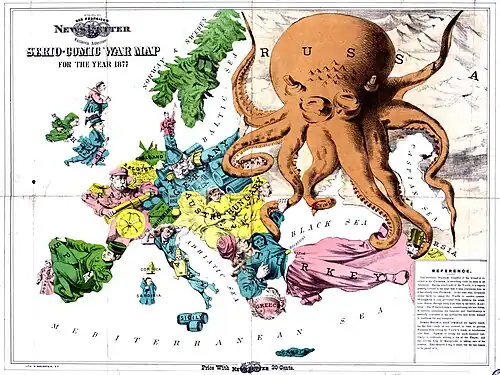 A Guerra da Crimeia (1853-1856) foi travada entre a Rússia, de um lado, e uma aliança da Grã-Bretanha, França, Sardenha e o Império Otomano, do outro. A Rússia foi derrotada.[81][82]