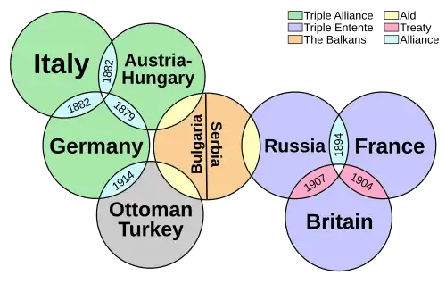 Para os períodos seguintes, veja história diplomática da Primeira Guerra Mundial e relações internacionais (1919–1939).
