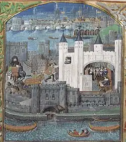 Representação do final do século XV da Torre de Londres e sua fortaleza, a Torre Branca