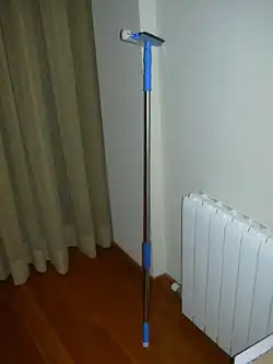Um tipo de rodo muito popular no Brasil, com cabo e acabamento de madeira.