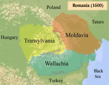 A Transilvânia, juntamente com os condados vizinhos, ganhou o status de um estado autônomo sob suserania otomana depois que os territórios centrais do Reino da Hungria foram anexados pelos otomanos em 1541. A queda do reino também privou a Valáquia e a Moldávia de seu principal aliado na luta contra o Império Otomano. Em 1594, Miguel, o Valente da Valáquia, aderiu à aliança anti-otomana iniciada pelo Papa Clemente VIII. Após uma série de vitórias sobre os otomanos, ele se voltou contra a Transilvânia e a Moldávia, onde reinavam os príncipes pró-poloneses e pró-otomanos. Ele invadiu e ocupou a Transilvânia em 1599, e a Moldávia em 1600. Embora a união dos três países tenha desmoronado quatro meses depois, serviu como um ideal para as gerações posteriores que trabalharam pela unificação das terras que agora formam a Romênia.