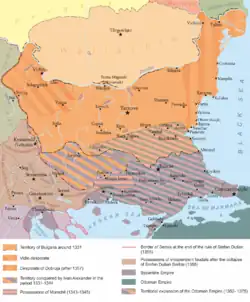 - ↑ Божилов (Bozhilov), Иван (Ivan); Гюзелев (Gyuzelev), Васил (Vasil) (1999). История на средновековна България VII–XIV век (History of Medieval Bulgaria VII–XIV centuries) (in Bulgarian). София (Sofia): Анубис (Anubis). pp. 342–343. ISBN 954-426-204-0.