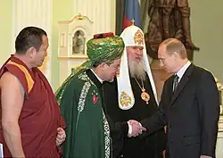 Vladimir Putin tem promovido explicitamente políticas conservadores na área social, cultural e política, tanto em seu país quanto no exterior. Putin tem atacado o globalismo e oneoliberalismo,[15] e promoveu novos grupos de reflexão que acentua o nacionalismo russo, a restauração da grandeza histórica da Rússia e sistemática oposição às ideias políticas liberais.[16] Putin tem colaborado estreitamente com a Igreja Ortodoxa russa. O patriarca Kirill de Moscou, líder da Igreja, aprovou a sua eleição, em 2012, afirmando que os termos de Putin era como "um milagre de Deus."[17][18] A Igreja Ortodoxa russa, por vezes, é hostil para grupos que promovem tendências nacionalistas e antiocidentais.[19][20]