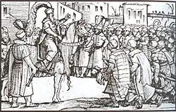 O retorno de Skanderbeg a Krujë, 1444 (xilogravura de Jost Amman)