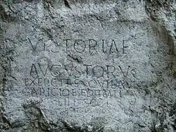 Mais a oeste, em 260, os romanos registaram uma vitória sobre os Jutungos perto da actual Augsburgo, a sul do Danúbio; um monumento criado para celebrar o evento descreveu estes Jutungos como Semnões, um povo suevo do Elba. No século IV, Amiano Marcelino descreveu os Jutungos como um dos povos que compunham os Alamanos.[77] Em toda a região entre os rios Meno, Reno e Danúbio, os Alamanos ultrapassaram as antigas fronteiras e ameaçavam as novas, realizando por vezes razias através delas. Durante o reinado de Probo (r. 276-282), a situação conturbada a leste empurrou também Suevos, bem como Burgúndios e Vândalos, para mais perto das fronteiras do Reno e do Danúbio, onde entraram em conflito com as forças romanas.