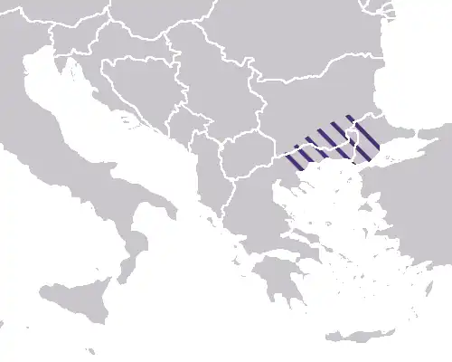 ![]() Extensão máxima do Tema da Macedônia, superimposta às fronteiras modernas | |||||