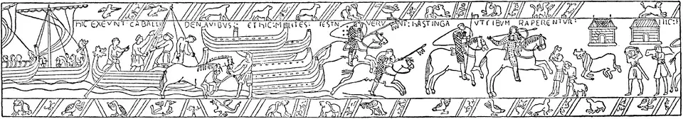 Registros de transporte de cavalaria abundam ao longo do período, refletindo a mudança na guerra. Por exemplo, os escandinavos tinham se adaptado à tecnologia de transporte de cavalos pelo século XII, como parte de seu afastamento da infantaria tradicional viquingue. A primeira ilustração mostrando o transporte de cavalos na Europa Ocidental pode ser encontrada em representação da tapeçaria de Bayeux onde está representada a conquista normanda da Inglaterra.[6] Este empreendimento militar particular exigiu a transferência de mais de 2000 cavalos da Normandia.[7]