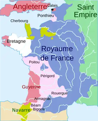 Na época da morte do Príncipe Negro em 1376 e da morte de Eduardo III em 1377, as forças inglesas haviam sido empurradas de volta para seus territórios no sudoeste, em torno de Bordeaux.