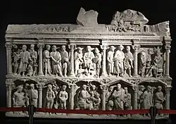 A escultura bizantina do Trecento representa uma inauguração da arte cristã, cujas primeiras obras são os sarcófagos destinados a membros da congregação que possuíam um status social e econômico superior. A considerada primeira obra cristã e, consequentemente, o melhor exemplo da escultura pela arte bizantina é Sarcófago de Júnio Basso, destinado ao prefeito de Roma Júnio Basso. Essa imagem cunhada em mármore mistura momentos do Velho e Novo Testamento. O intuito da obra é demonstrar a tranquilidade e sabedoria, além do conceito de redenção pela religião.[7]