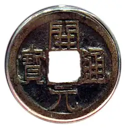 As moedas, redondas com um furo quadrado no centro, permaneceram em circulação até 958 d.C.[7] Estas foram as primeiras de uma série de moedas chamadas coletivamente de jūnizeni ou kōchō jūnisen (皇朝十二銭).[8]