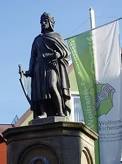 ![]() Monumento para Wolfram von Eschenbach na praça e cidade que levam o seu nome | |