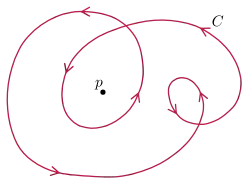 As voltas realizadas em sentido anti-horário contam como positivas, e as realizadas em sentido horário têm valor negativo. Assim, por exemplo, se um objeto percorre a curva em torno de p, descrevendo quatro voltas em sentido anti-horário e uma em sentido horário, o índice da curva ao redor do ponto p é três. O índice depende portanto da orientação da curva, e muda de sinal ao mudar de orientação.