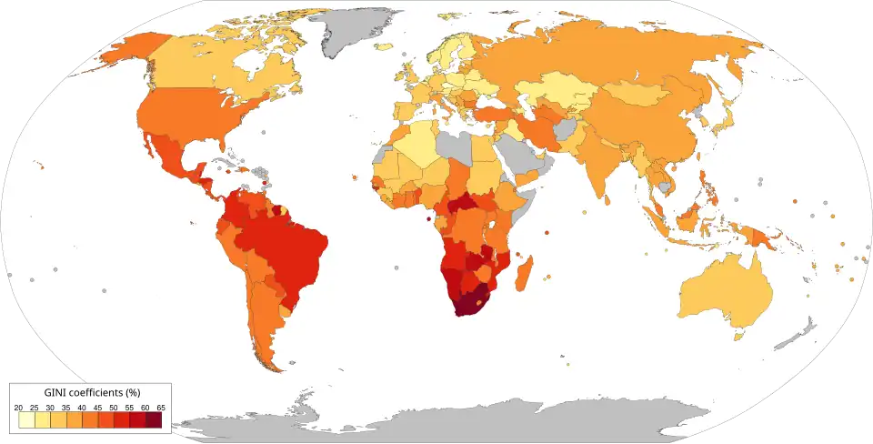 Coeficiente de Gini, por vezes chamado índice de Gini ou razão de Gini, é uma medida de desigualdade desenvolvida pelo estatístico italiano Corrado Gini, e publicada no documento "Variabilità e mutabilità" ("Variabilidade e mutabilidade" em italiano), em 1912.