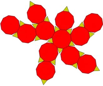 Tem 12 faces decagonais regulares e 20 triângulares regulares.