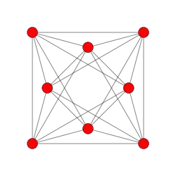 ![]() uma projeção em 3D do hexadecácoro a partir de uma rotação simples. |