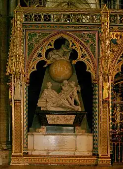 O monumento de Newton (1731) pode ser visto na Abadia de Westminster, ao norte da entrada do coro, perto de sua tumba. Foi executado pelo escultor Michael Rysbrack (1694–1770) em mármore branco e cinza, com design do arquiteto William Kent. O monumento mostra uma figura de Newton reclinada em cima de um sarcófago, o cotovelo direito apoiado em vários de seus grandes livros e a mão esquerda apontando para um pergaminho com um desenho matemático. Acima dele, há uma pirâmide e um globo celeste, mostrando os signos do zodíaco e o caminho do cometa de 1680. Um painel de relevo mostra putto usando instrumentos como telescópio e prisma. A inscrição latina na base é traduzida como: