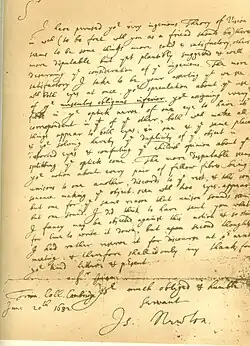 Fac-símile de uma carta de 1682 de Isaac Newton ao Dr. William Briggs, comentando sobre a obra A New Theory of Vision de Briggs