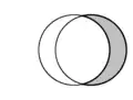 | Na geometria plana, a forma crescente formada por dois círculos que se cruzam é chamada de lúnula. Em cada diagrama, duas lúnulas estão presentes e uma é sombreada em cinza. | ||