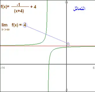 Se o limite no infinito de uma função existe, então a função tem uma assímptota horizontal y = L. Note que polinômios não possuem assímptotas horizontais, enquanto que elas podem ocorrer com funções racionais.