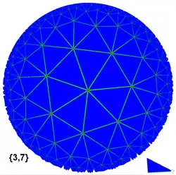 Essas malhas são relatadas devido a polígonos regulares ou semi-regulares em outra dimensão que não a IR². Os polígonos semi-regulares dessa ordem são construídos a partir de faces regulares de um polígono em 2ª dimensão, mas seus ângulos devem somar menos de 360º. Polígonos regulares em geometria hiperbólica possui ângulos menores do que eles possuem em 2ª dimensão. Em ambos os casos, o arranjo dos polígonos em cada vértice não significa que o polígono da dimensão superior possui transitividade nesse vértice.