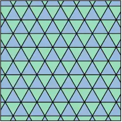 - 34.6 - semi-regular, Snub hexagonal tiling, aparecendo em duas entianomorphic formas. Os vértices das duas formas são o mesmo, mas as malhas planas resultantes são diferentes.