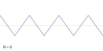 É possível se aproximar de uma onda triangular utilizando síntese aditiva adicionando-se harmônicas ímpares à fundamental, multiplicando-se cada (4n−1)énsima harmônica por −1 (ou mudando sua fase por ), e inserindo as harmônicas com o inverso do quadrado de sua frequência relativa à frequência fundamental.