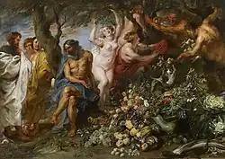 O pitagorismo também envolvia uma série de proibições alimentares.[92][93] É mais ou menos de acordo que Pitágoras emitiu uma proibição contra o consumo de feijão fava[94] e a carne de animais não sacrificados, como peixes e aves.[85] Ambas as suposições, no entanto, já foram contraditas[95][96] ou ou associadas a significado simbólico. Restrições alimentares pitagóricas podem ter sido motivadas pela crença na doutrina da metempsicose.[97][64] Alguns escritores antigos apresentam Pitágoras como reforçando uma dieta estritamente vegetariana.[nota 2] Eudoxo de Cnido, um estudante de Arquitas, escreve: "Pitágoras se distinguiu por essa pureza e, portanto, evitou matar e aqueles que matavam, de modo que ele não apenas se absteve de alimentos de origem animal, mas também manteve distância de cozinheiros e caçadores".[98][99] Outras autoridades contradizem essa afirmação.[100] Segundo Aristóxenes,[101] Pitágoras permitia o uso de todos os tipos de alimentos para animais, exceto a carne de bois usados para arar e de carneiros.[102][99] De acordo com Heráclides Pôntico, Pitágoras comia a carne dos sacrifícios[99] e estabeleceu uma dieta para atletas dependente de carne.[99]