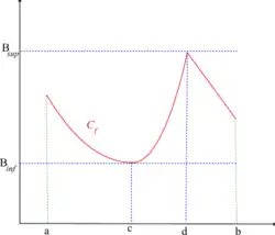 | Primeira derivada nula, ou seja, | É ponto crítico; a função atinge um mínimo local no ponto | É ponto crítico; Se a derivada segunda também for nula, não se pode concluir se é ponto de mínimo, máximo ou sela. No entanto, se for o ponto em questão e se existir algum número ∈ N tal que se ∈ {…}; ≠ | É ponto crítico; a função atinge um máximo local no ponto |