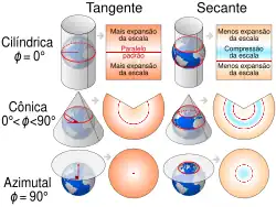 As projeções cartográficas podem ser representadas de diversas maneiras.[5]