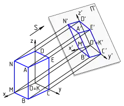 Se o normal do plano de visão (a direção da câmera) é paralela com um dos primeiros eixos (eixos x, y ou z), a transformação matemática é a seguinte; Para projetar o ponto 3D , , no ponto 2D , usando a projeção ortográfica paralela ao eixo y (onde o y positivo representa a direção para frente - vista de perfil), a seguinte equação pode ser utilizada: