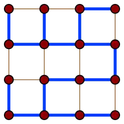 Exemplo de uma árvore de dispersão (composta pelas arestas azuis)