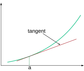 Para valores próximos de , a curva descrita pela função se aproxima de uma reta. Dessa forma, se uma reta for traçada tangente a essa curva, no ponto , é possível calcular o valor aproximado de .